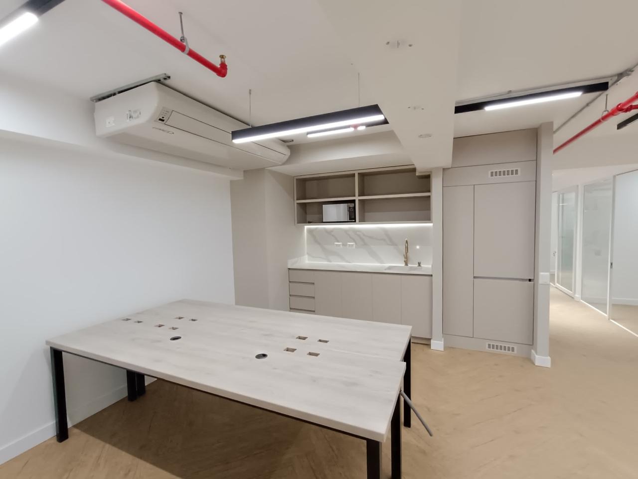 El proyecto comprende el desarrollo de una oficina moderna y funcional ubicada en el segundo piso de un edificio multi-oficinas, diseñada para satisfacer las necesidades de un entorno laboral dinámico.